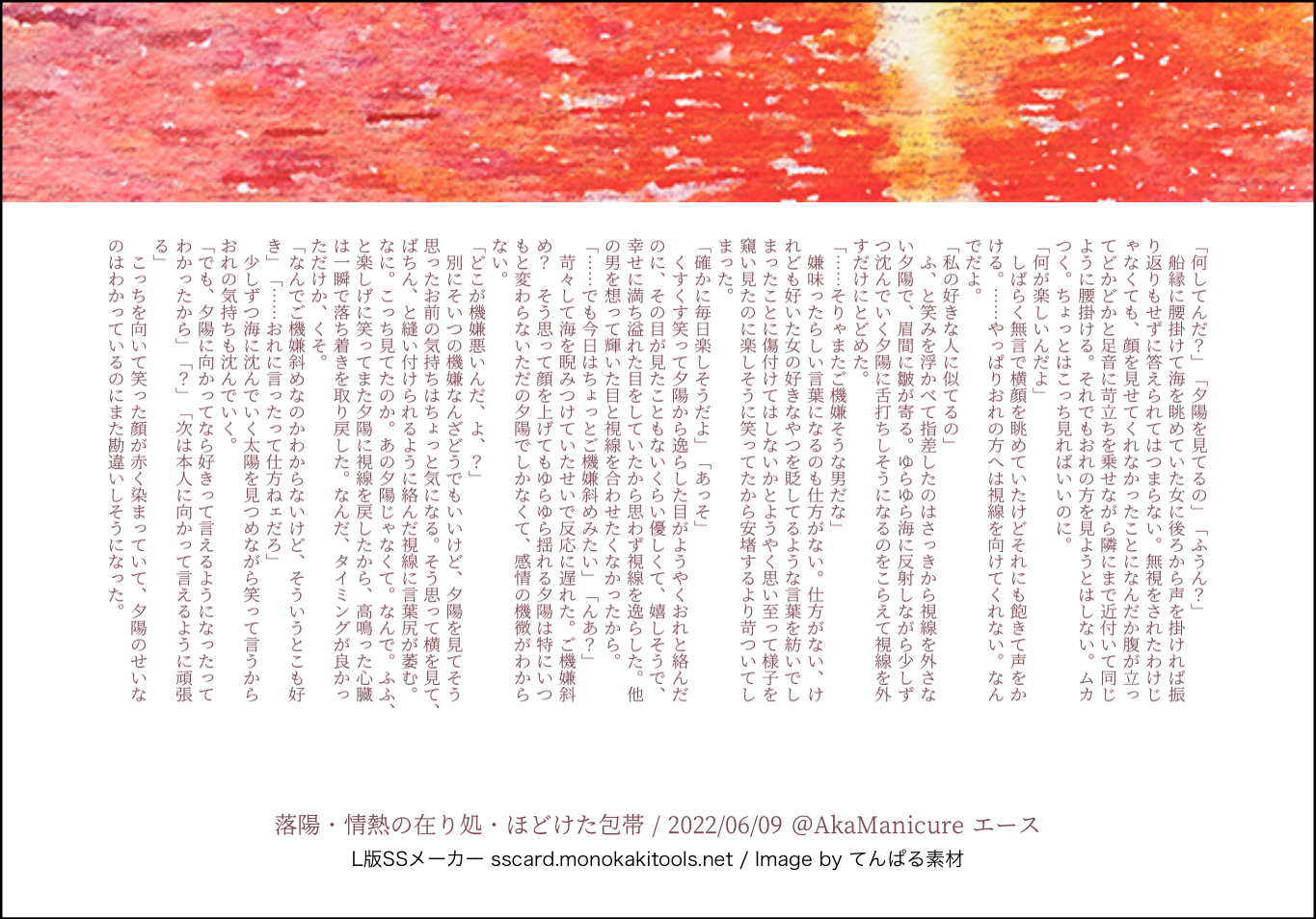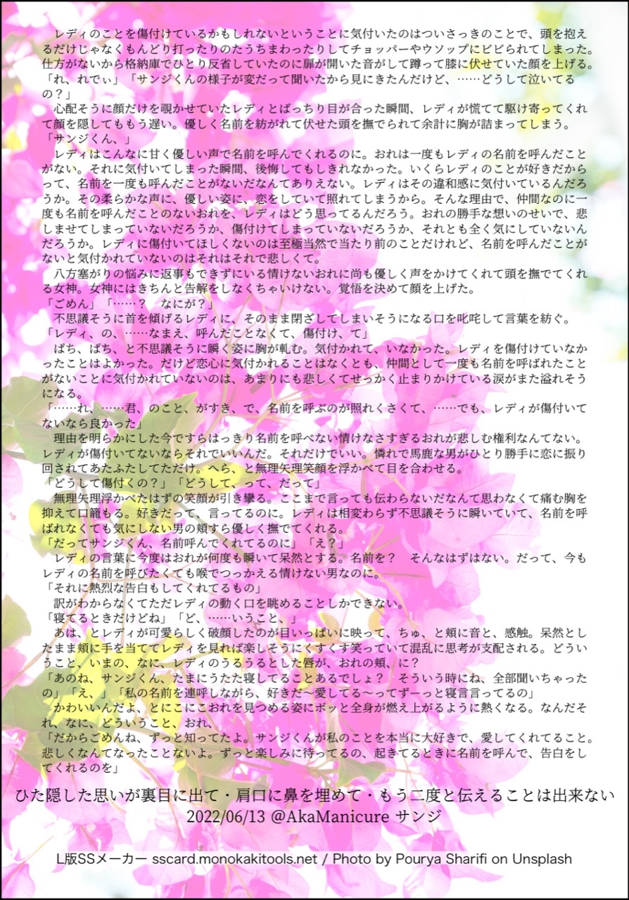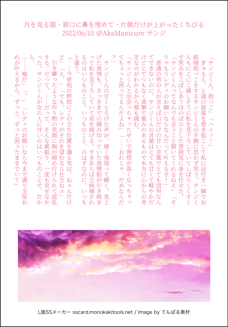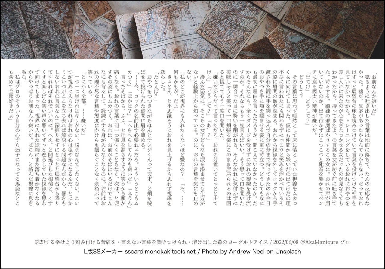 全部のお題を使えなくてもいい。書くのに飽きたら話が中途半端だろうとそこで強制終了。な適当ルールの文章練習あそび。(