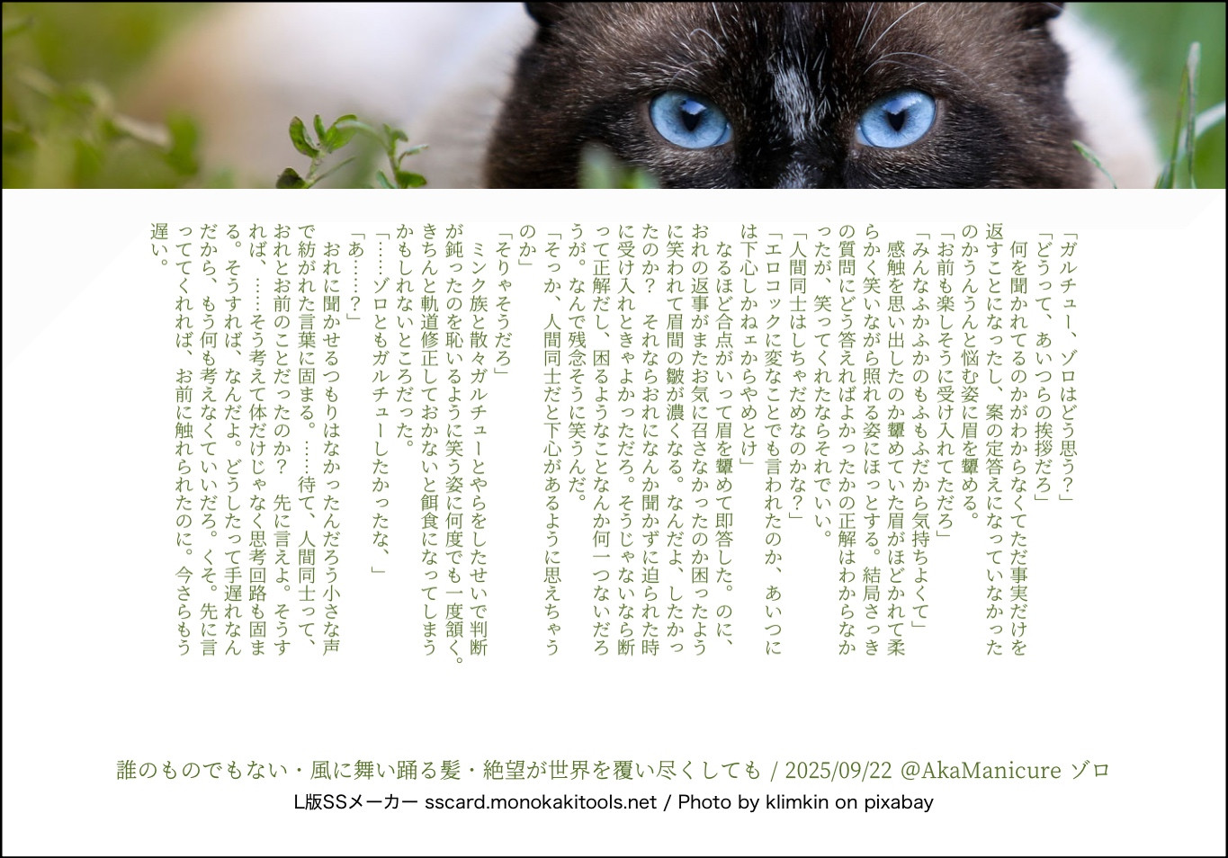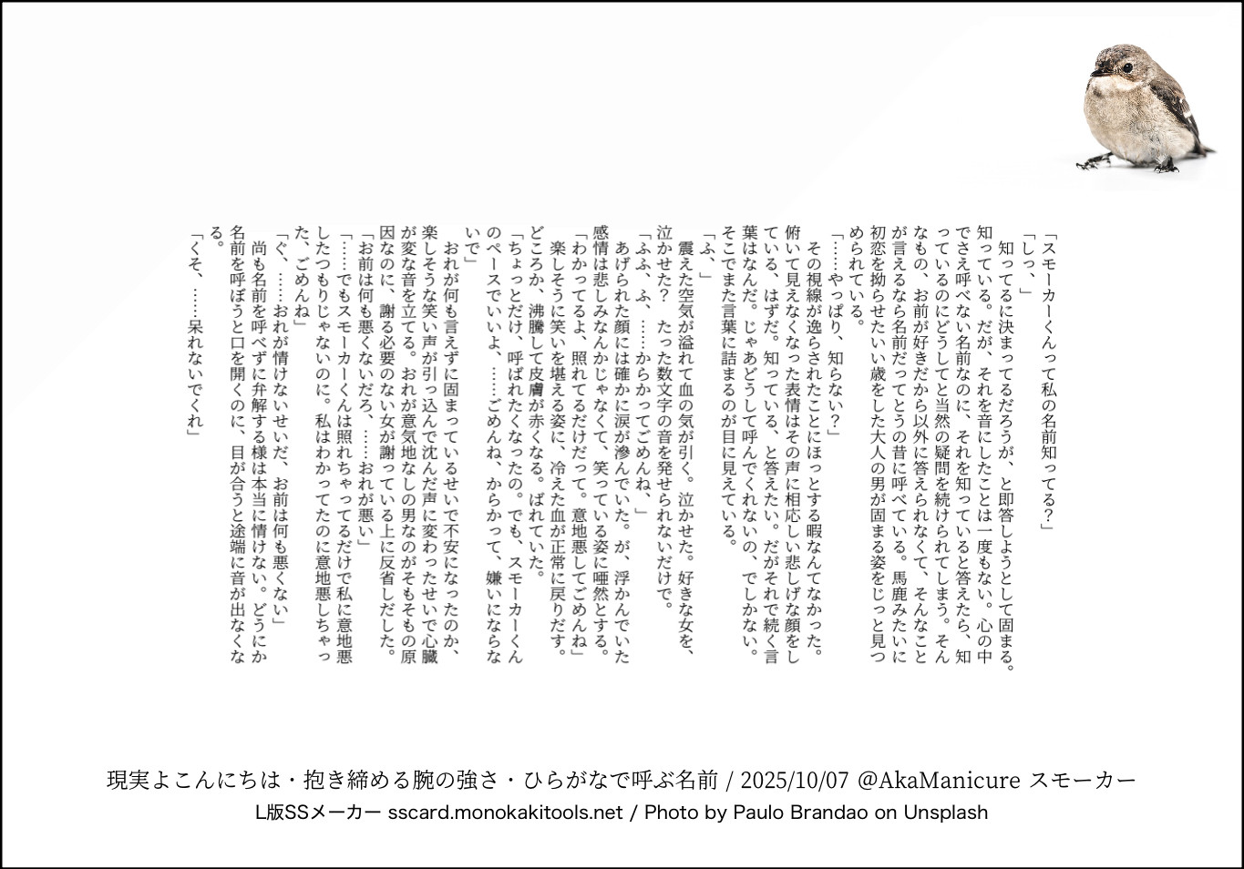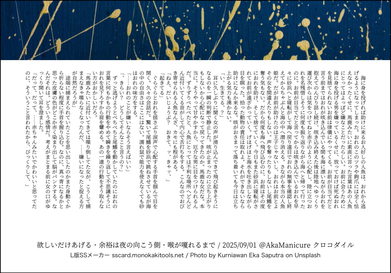 全部のお題を使えなくてもいい。書くのに飽きたら話が中途半端だろうとそこで強制終了。な適当ルールの文章練習あそび。(