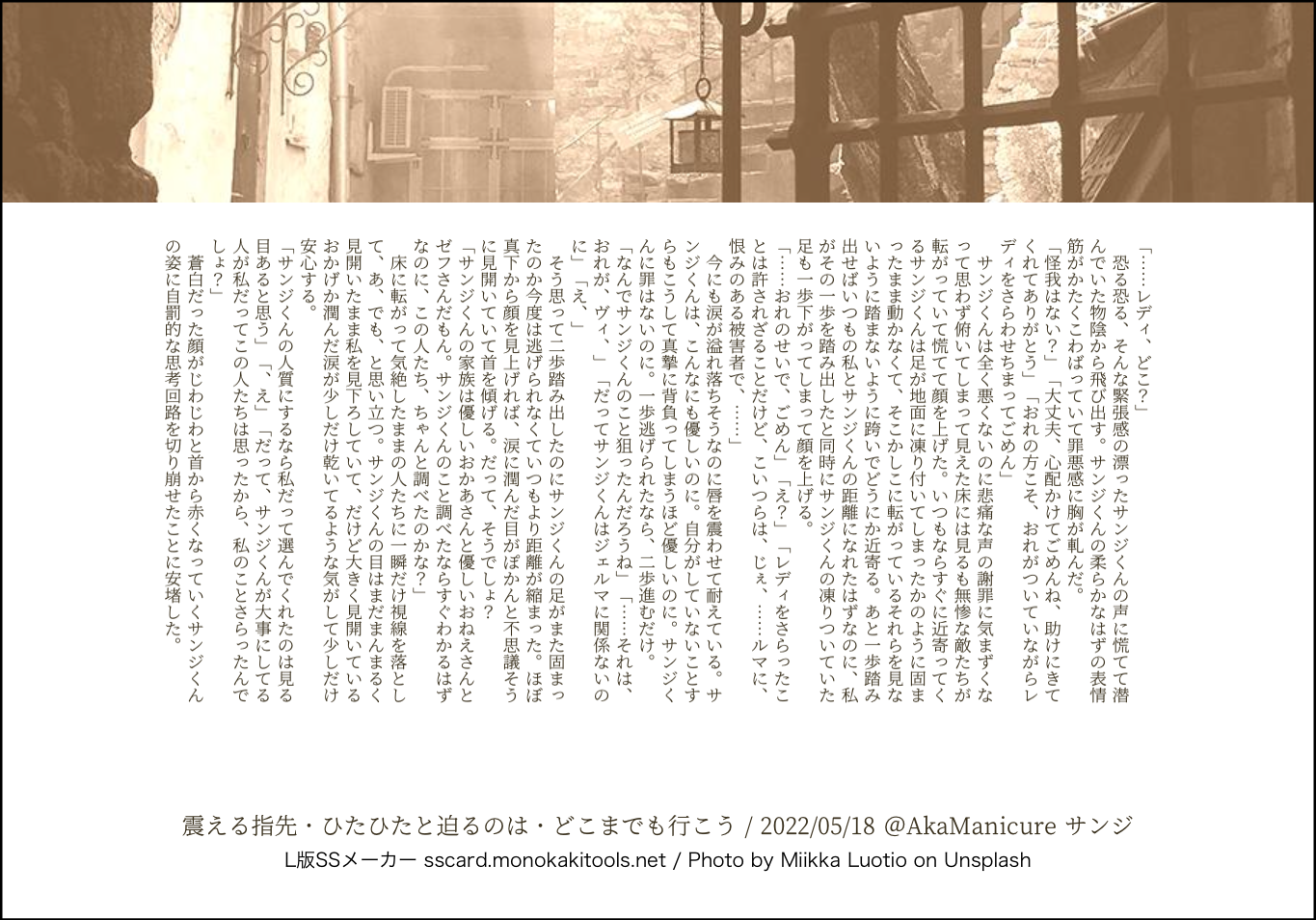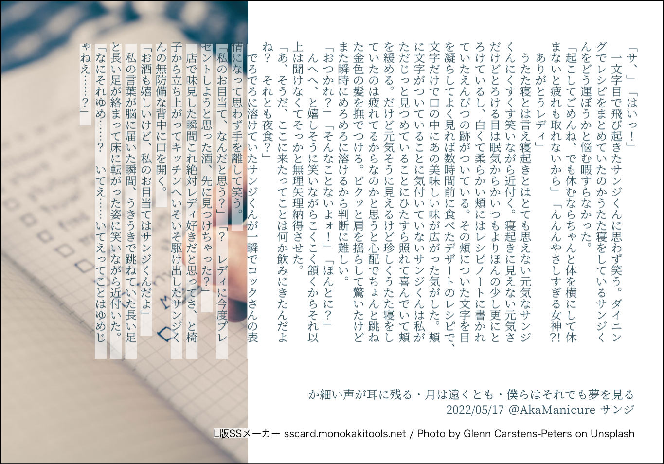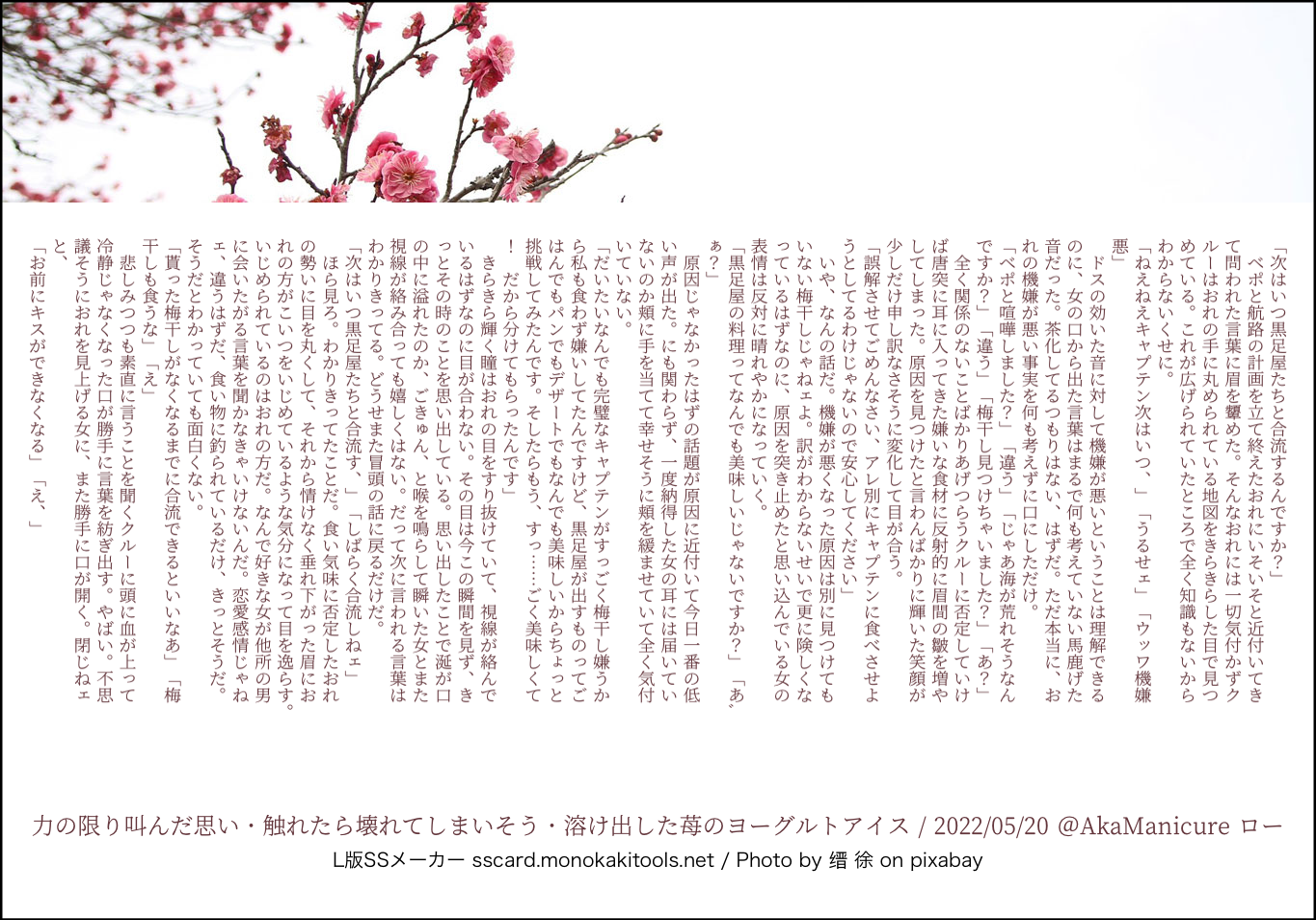 全部のお題を使えなくてもいい。書くのに飽きたら話が中途半端だろうとそこで強制終了。な適当ルールの文章練習あそび。(