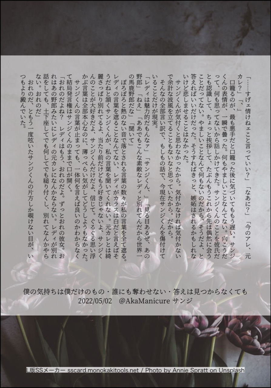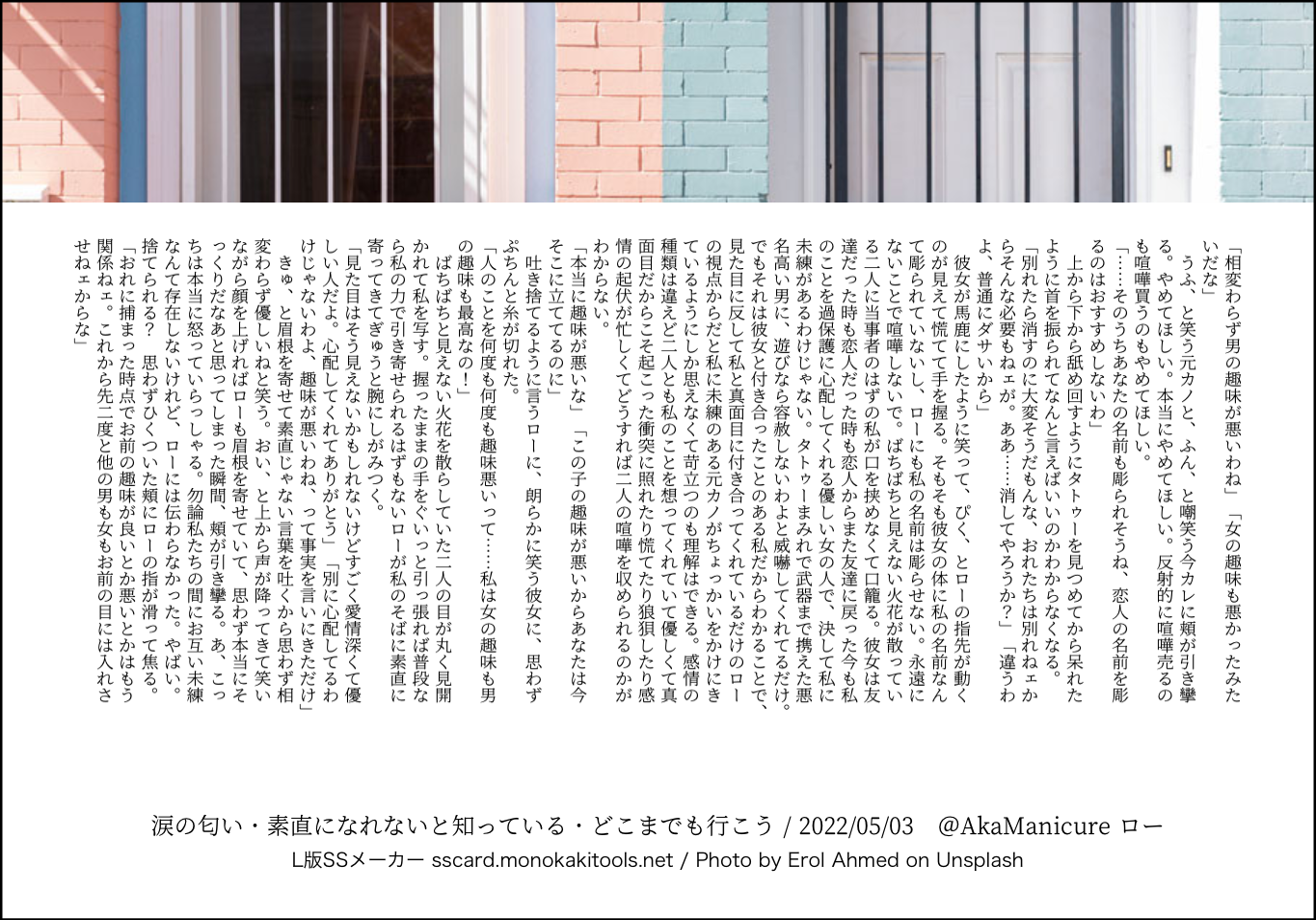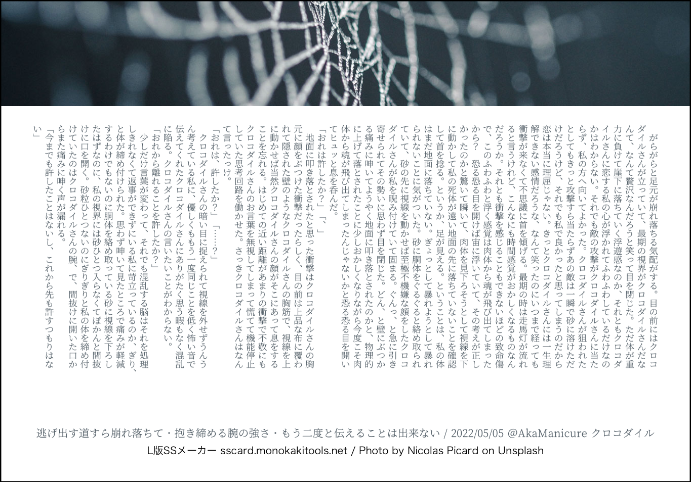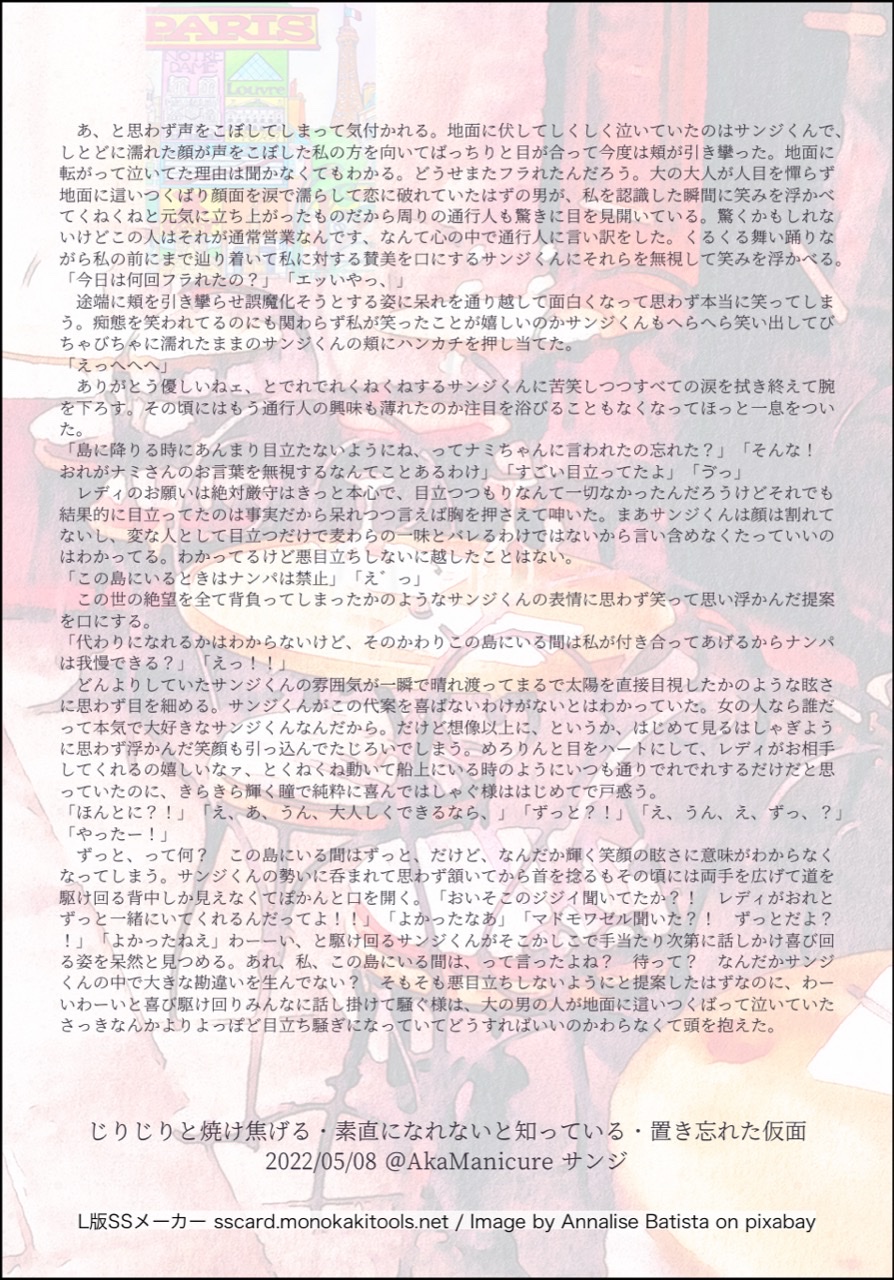 全部のお題を使えなくてもいい。書くのに飽きたら話が中途半端だろうとそこで強制終了。な適当ルールの文章練習あそび。(