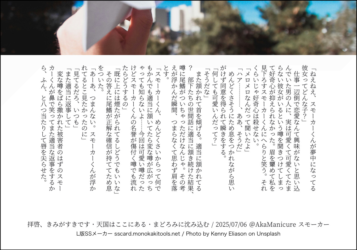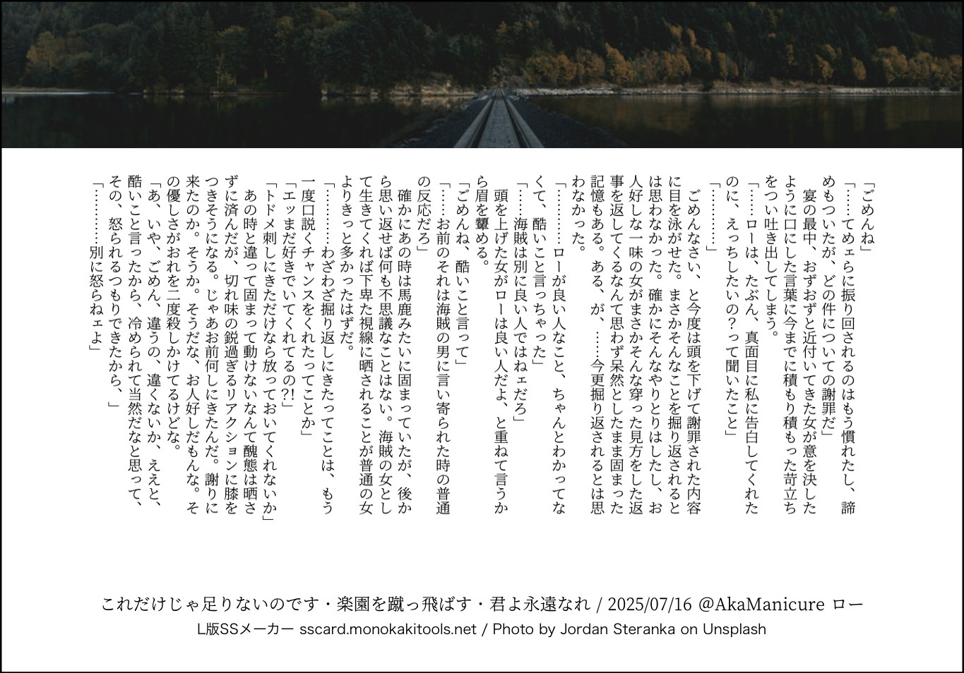 全部のお題を使えなくてもいい。書くのに飽きたら話が中途半端だろうとそこで強制終了。な適当ルールの文章練習あそび。(