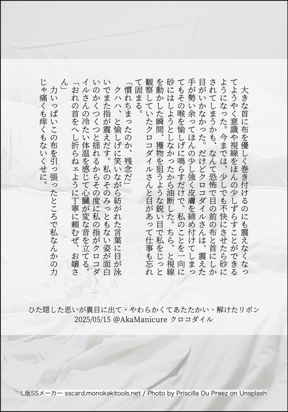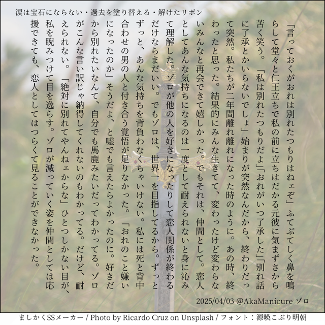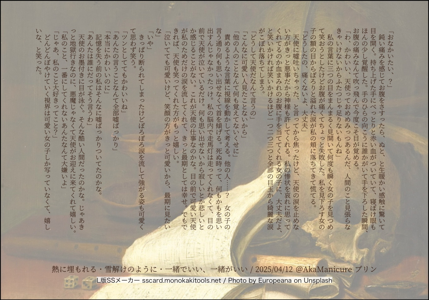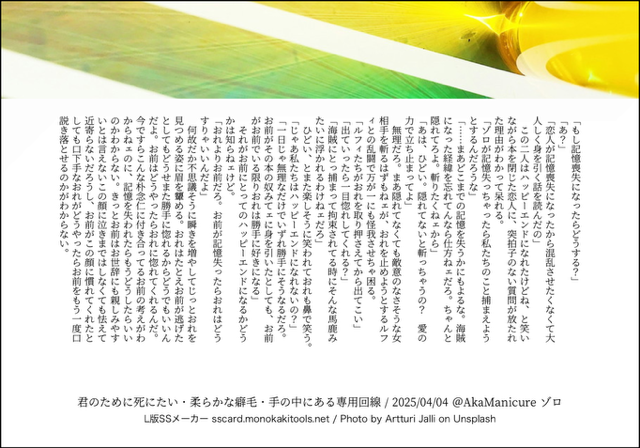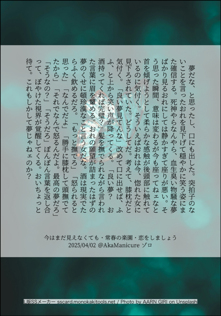 全部のお題を使えなくてもいい。書くのに飽きたら話が中途半端だろうとそこで強制終了。な適当ルールの文章練習あそび。(