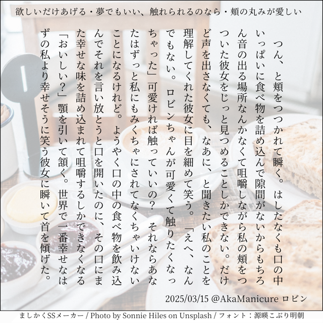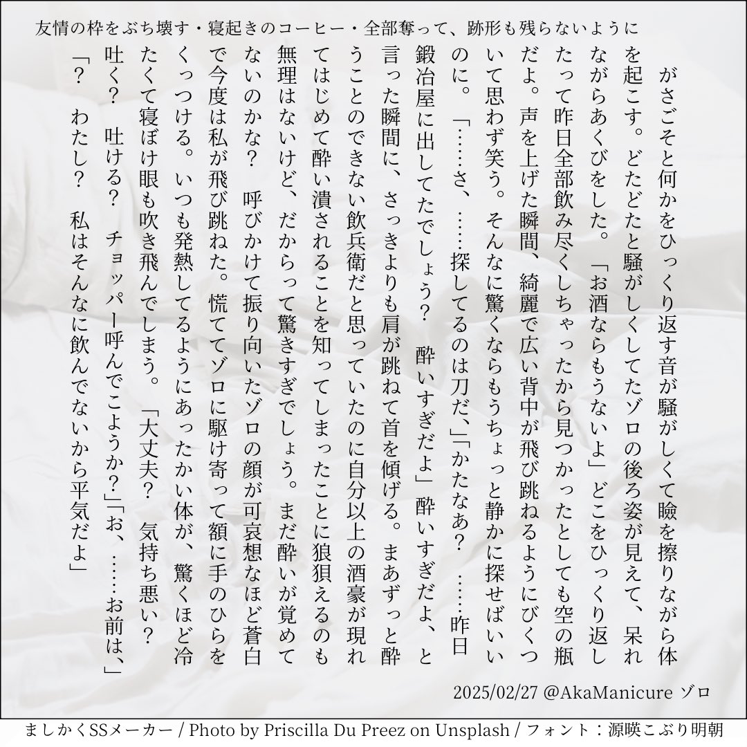 全部のお題を使えなくてもいい。書くのに飽きたら話が中途半端だろうとそこで強制終了。な適当ルールの文章練習あそび。(