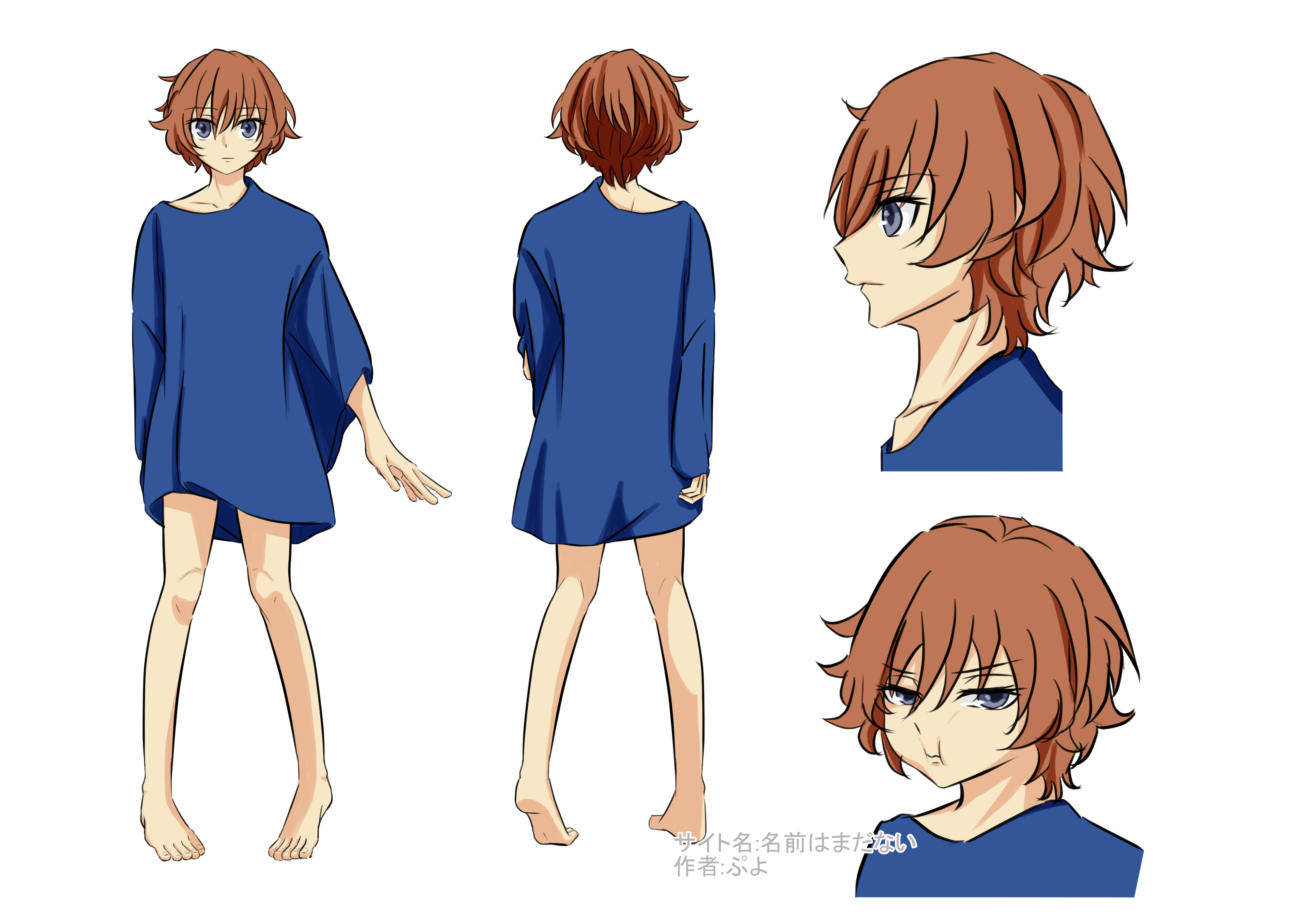 まだ自我の無い子なのでお洒落も何もしてない 髪の毛も伸ばしっぱなし放置し放題なので元々の癖毛に加え外ハネしてる所が多いです 基本裸足、外行く時は適当に借りたりする。ただいつの間にか脱いでるので注意が必要 Tシャツは青のイメージ。胸元辺りに☆が3つついてるイメージあったがそこは脳内補正でお願いします