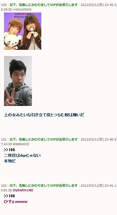 ・2013年冬には彼女がいると報告。彼女のプリクラを挨拶板にUPしラブラブエピソードを語ったが名無しにB専と論破された。