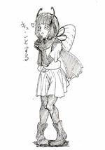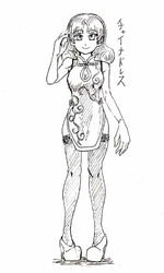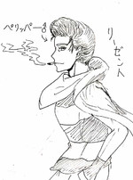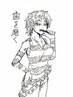 私服バージョン。手が変。こういうポーズすると片腕が消えます。右腕はどうやって描けばいいんだ……。