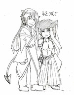 頭身低めに描いてみた。ティルスはともかく後に描いた紅鎌は少し失敗しましたね……。こうやってみると二人とも原型迷子だなぁと思います(デザイン力不足)