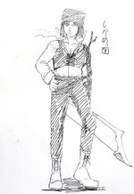 手が変。泣き黒子あったっけこいつ……(失念)こいつの服描くの久々すぎてこれでよかったか忘れたけどこのサイト設定画ないしまあ良いか(適当)