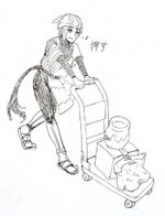 なんでこいつ台車押してるんですかね……?(疑問)全くシチュとか考えていなかったのですが、一応嫁さんの片付けを手伝っているとかそんな感じだと思います。脚や顔に対して腕が細い。