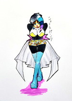 ミニキャラ。彼女を描く度に我ながら全身タイツ好きだよなぁとしみじみ思います。……今ふと心配になったのですがこういう服って全身タイツって扱い良いんですかね……?(疑問)ラバースーツ……とも違うような……。