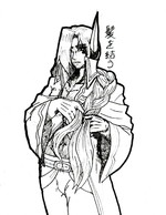 太古の時代を生きた冷静な青年。グシャラトとは恋人であり親友であり、片割れ?という間柄です。しばしばアクセサリーを忘れるので設定画ガン見しながら描くことが多いです、でも見ても忘れてるね(首飾り)