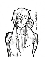 アローラの要塞カフェで働いている警備員兼ウェイターの青年。基本は警備員ですがピークタイムはウェイターとして働くことが多いです。ウェイターやる時はワンショルダーのエプロンをつけるようです。