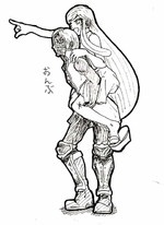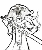 殺る気満々という感じで描こうとしたら失敗しました。剣の持ち方がおかしい。酒飲んでる時の方がクオリティが高いのなんで?(知るか)