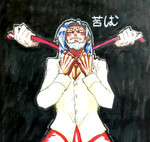 太古の時代を生きた為政者。現代社会を理解する為様々なことに関心を持っています。死んだ理由は他殺、というか内部の裏切り。刺殺の可能性が高いけどもしかしたら絞殺だったのかもしれないなと思いながら描きました。服が現代なのはご愛敬。