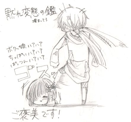 変態三連打 ※いかつい男は嫌いです 硝子さんは怒らせるとマジで怖い。 確か、台風直撃してた時に、風うっさいなぁーとか思ってたらふと降りてきたネタです これもしかして、セリフ入れ替えれるようにしたら汎用性高いやつでは