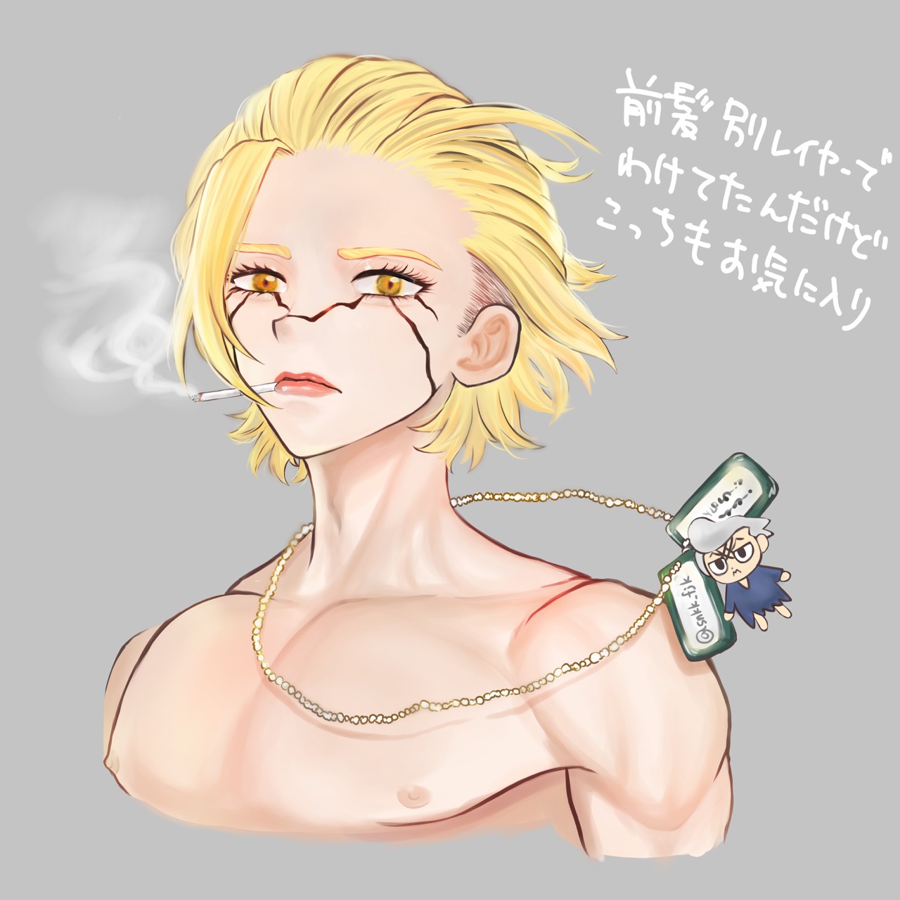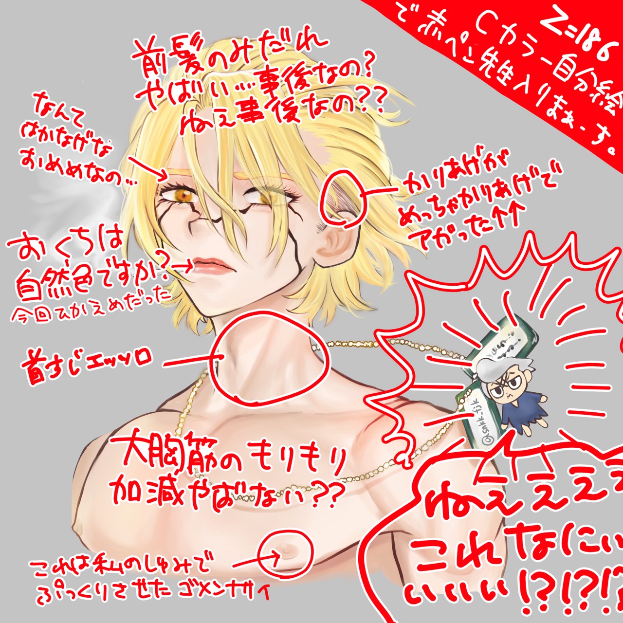 引き続きdcst本誌の衝動が抑えきれなくて、例のCカラーを参考に自分絵で描いたスタ様の絵に粗ぶった感情を書き込みしました。ついでに差分で前髪なしverも上げておきます。(3枚)