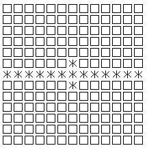 上端、下端の中央は確実に一マス分石が必要になる。これを起点として辺を作り上げていかなければレイアウトできない。マスが十字方向にのみ交わっている点を考えると、恐らく縦、横、斜めに連続しておかなければ部屋は作られないのだろう。