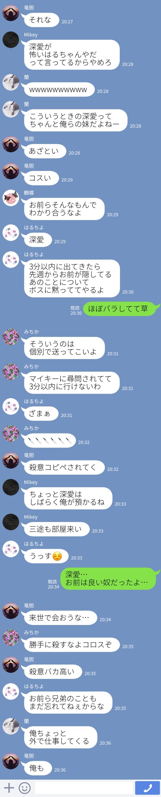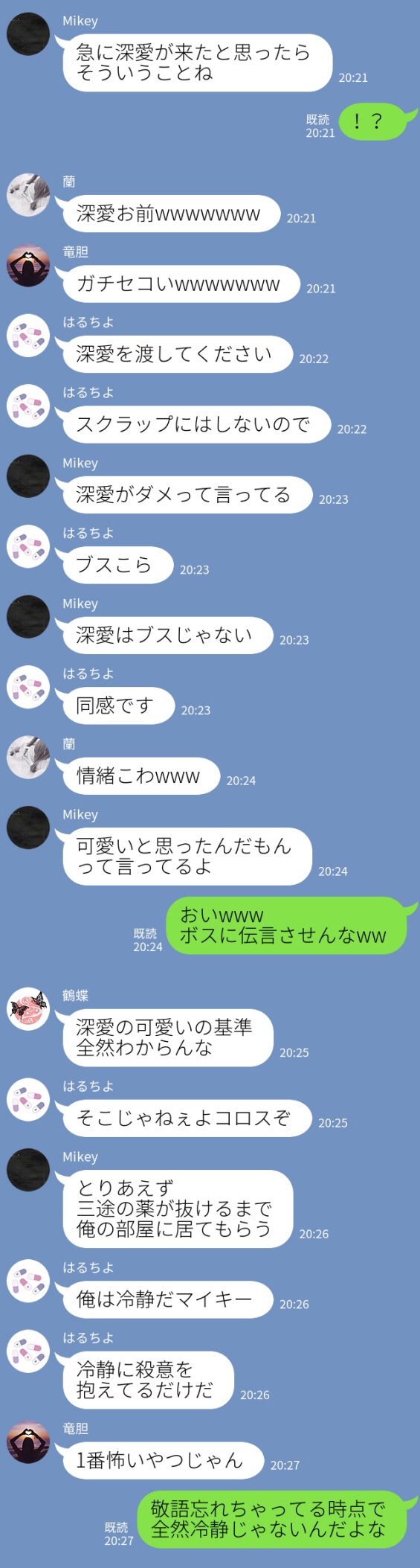 「自分でやんなよ」「ヤダ」みたいな可愛い会話して深愛に甘えた結果、灰谷ズに遊ばれることになった三途春千夜。くそ平和。