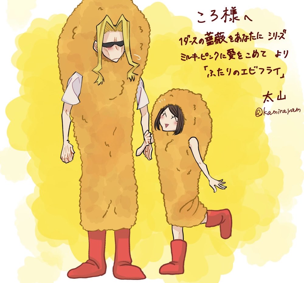 太山さまがが「1ダースの薔薇をあなたに」シリーズ「ふたりのエビフライ」のイメージイラストを描いてくださいました〜。 やや困惑気味のマイトさんも、楽しそうな夢主もめちゃくちゃかわいいです。 太山さま、素敵なイラストをありがとうございます!