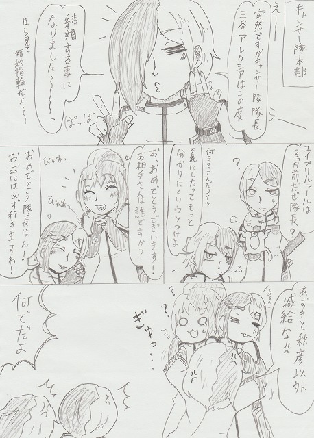 公開プロポーズ後に一回キャンサー隊基地に戻って報告したアレクシアのワンシーン。