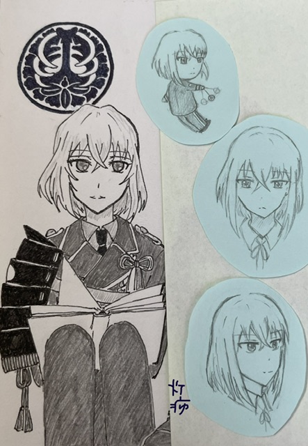 鯰尾くんの左向きと骨喰くんの右向きを並べて載せられるようにしたかったんですけど、並べて描いた訳じゃ無いので、骨喰くんの方が小さくなってしまいました。