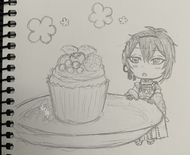 Twitterで見たもちちかくんを、頭の中でミニキャラ化しちゃいまして、こちらの落書きでした。