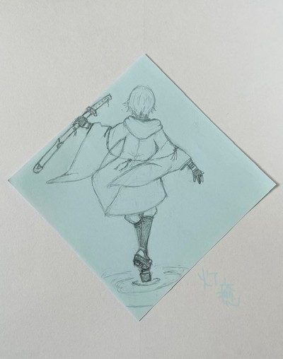 ミニキャラを描き終えた所で、どうしても先に描きたくなってしまったので、鶴丸さん後姿です。