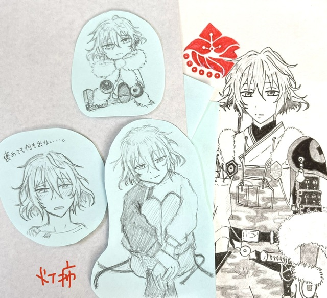 最初はゴミ袋持ってる姿にしようとしましたが、彼の言う「ゴミ」は若干ニュアンスが違うようなので、ゴミ袋案は没しました。
