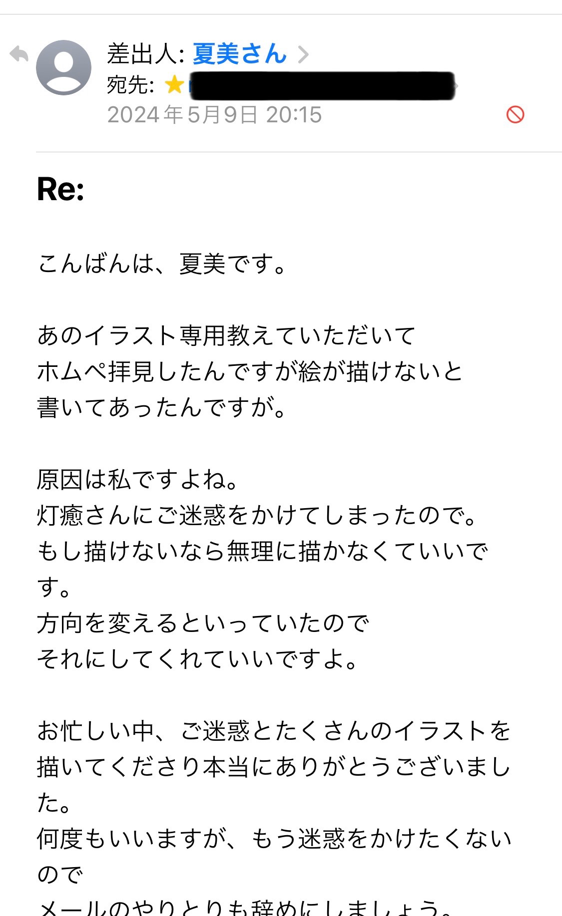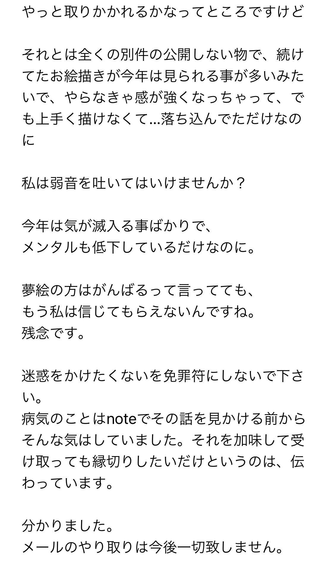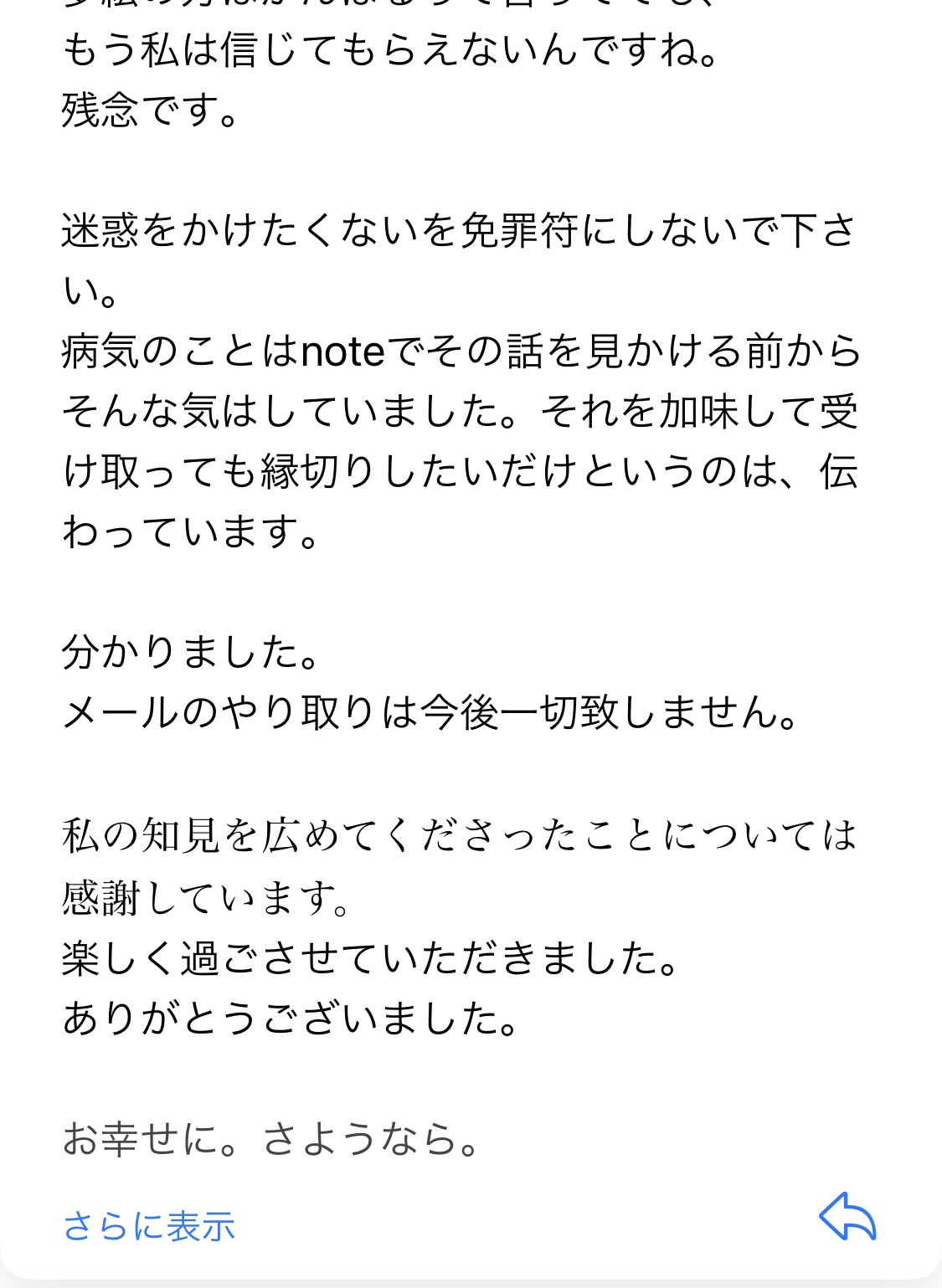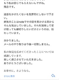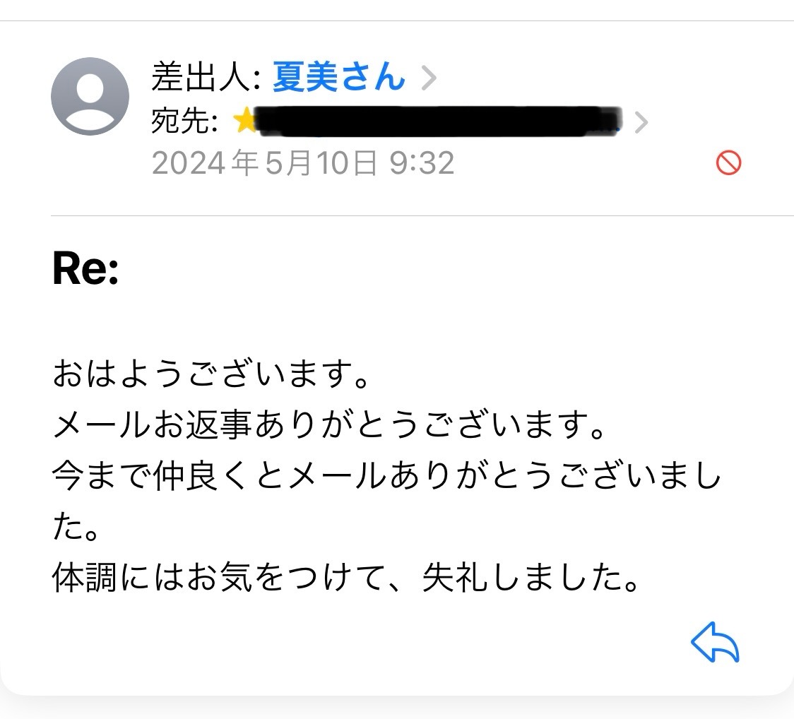 相手からもうメールはやめましょうとの事で、やりとりは辞めることにする。