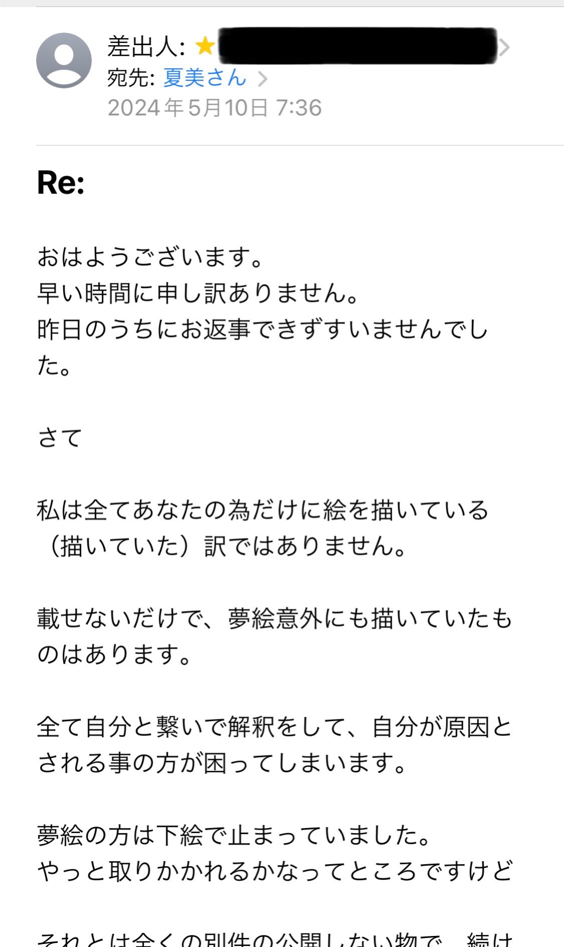 ある日お絵描きが思ったように行かず呟いた「描けない」に相手方からメールのやりとり。