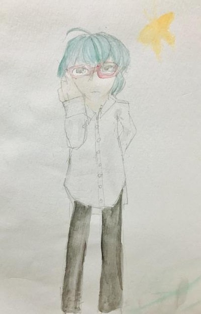 ・髪型:深い緑と紺色が混ざった色の天パ。ワインレッドのフレームの眼鏡を愛用。実際視力はド近眼なため、眼鏡がないとほとんど何も見えない。