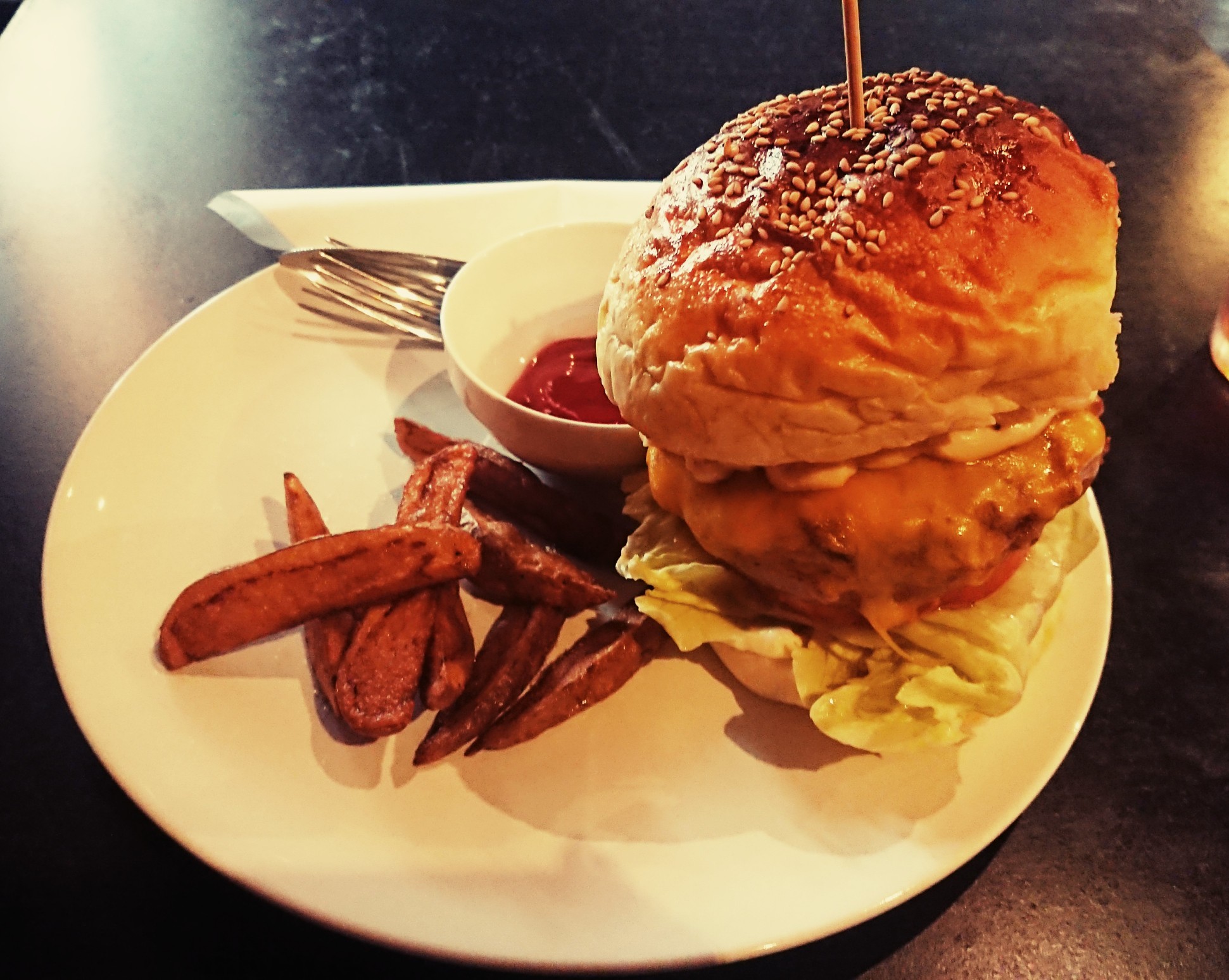 所用で中野に行ったついでに ランチで行って来た! 入口! お店は2階 お好きな席どうぞ〜と言われたので、 遠慮なく奥の席へ(笑) 本人が座った席とかこだわり一切なし← 座席からの景色〜 右側にはっしー達が座ったカウンター席 ちょっと身を乗り出したら カウンター席見える アボカドチーズバーガー